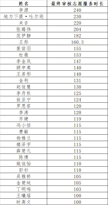 经个人申请,学院审核,以本年度志愿服务总时长为主要依据,拟表彰李源等同学麻豆视频 优秀志愿者荣誉,具体名单如下: