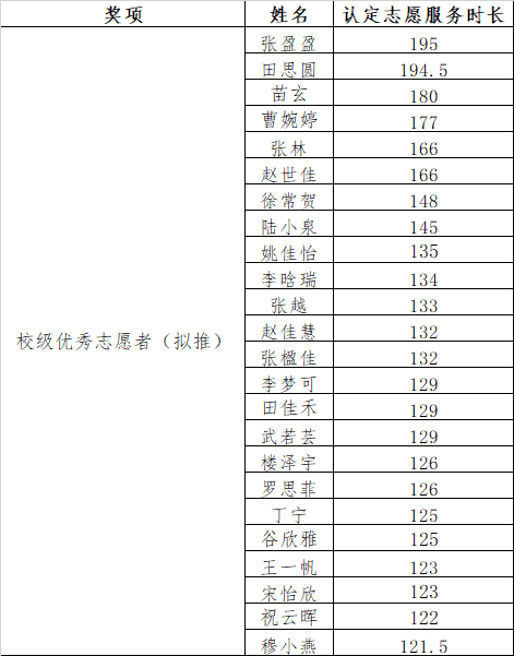 经个人申请,学院审核,以本年度志愿服务折算总时长为主要依据,拟推荐张盈盈等24名本科同学申请南京农业大学优秀志愿者,赵梓含等26名本科同学为麻豆视频