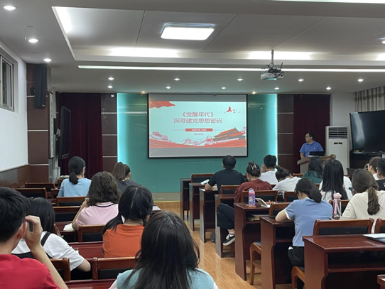 会议伊始,支部书记上官凌飞同志以《觉醒年代》为例,讲授《觉醒年代探寻建党思想密码》专题党课。上官凌飞从寻求救国救民之路、唤起民众思想觉醒、实现中国共产党成立三个方面,为大家生动讲授了中国共产党诞生的历史必然性和道路选择的正确性,带领大家重温百年前那段激情燃烧的岁月。结束时,上官凌飞同志引用了鲁迅先生的经典语录“愿中国青年都摆脱冷气,只是向上走,不必听自暴自弃者流的话。能做事的做事,能发声的发声。有一分热,发一分光。就令萤火一般,也可以在黑暗里发一点光,不必等候炬火。”,希望支部青年都能够坚持自己的信念,积极向上,发出属于自己的光芒。