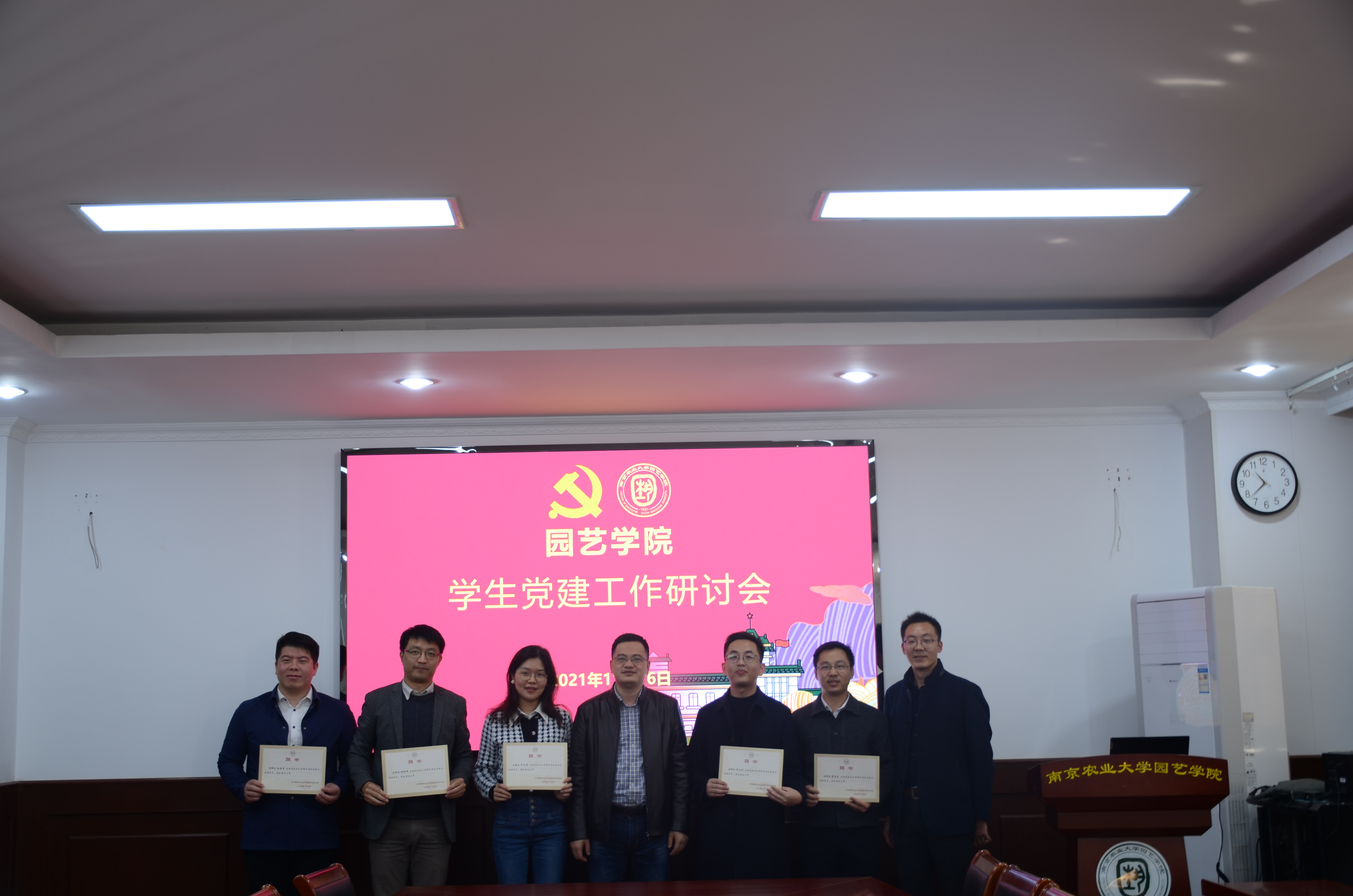 于11月16日上午召开学生党建工作研讨会暨党建工作指导员聘任仪式,学院党委书记韩键、党委副书记文习成出席会议,校党委组织部杨海峰、校党委宣传部许天颖、校纪委办公室彭益全、校党委办公室阙立刚和校研究生院孙国成老师作为受聘党建指导员以及学院部分学生党支部书记也参加了会议。