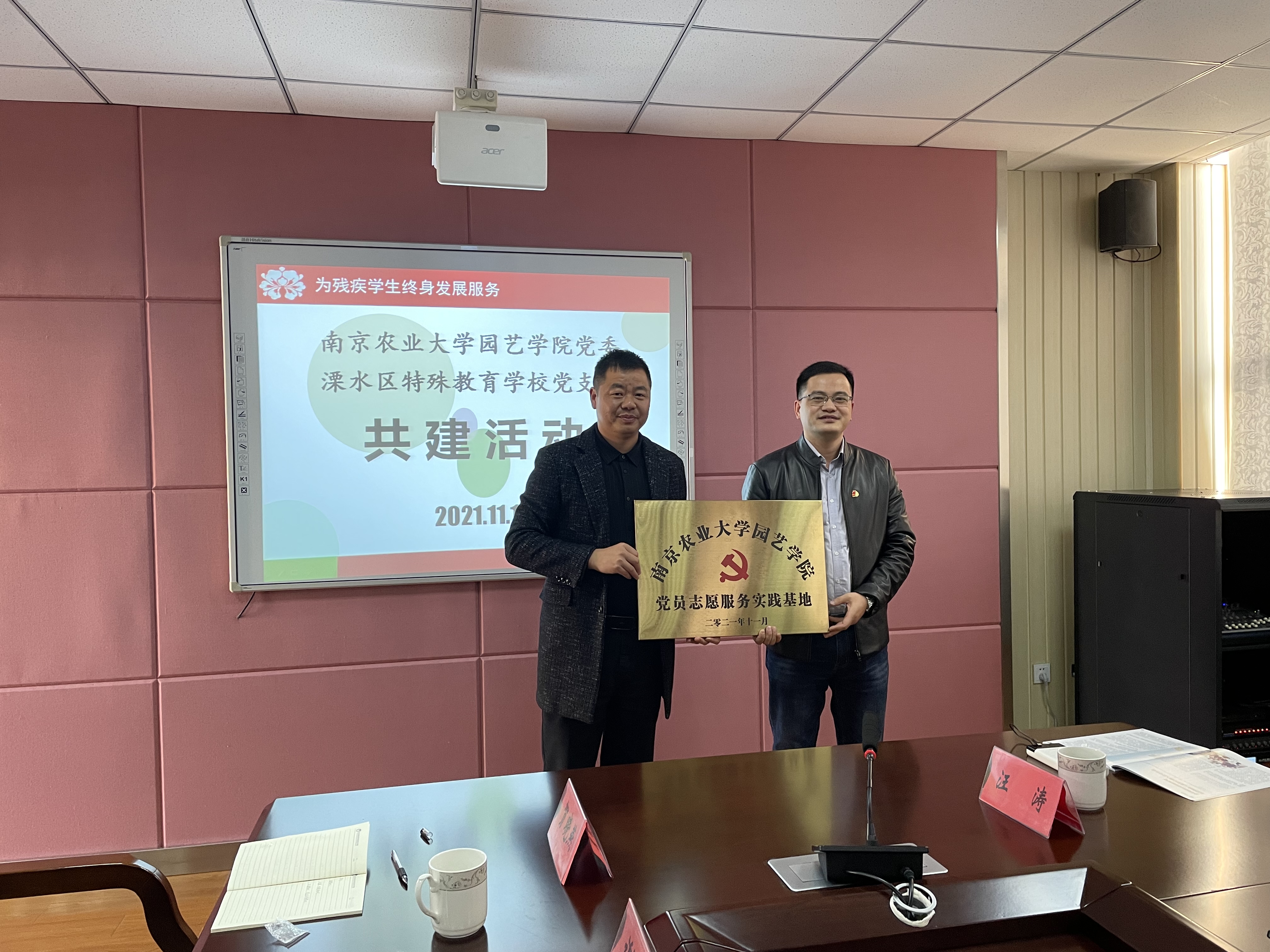 党员志愿服务实践基地授牌仪式,既是对与会教师的一次党性和师德师风教育,也是学院党员师生与溧水特殊教育学校领导老师的一次立德树人、园艺基地建设的交流讨论。