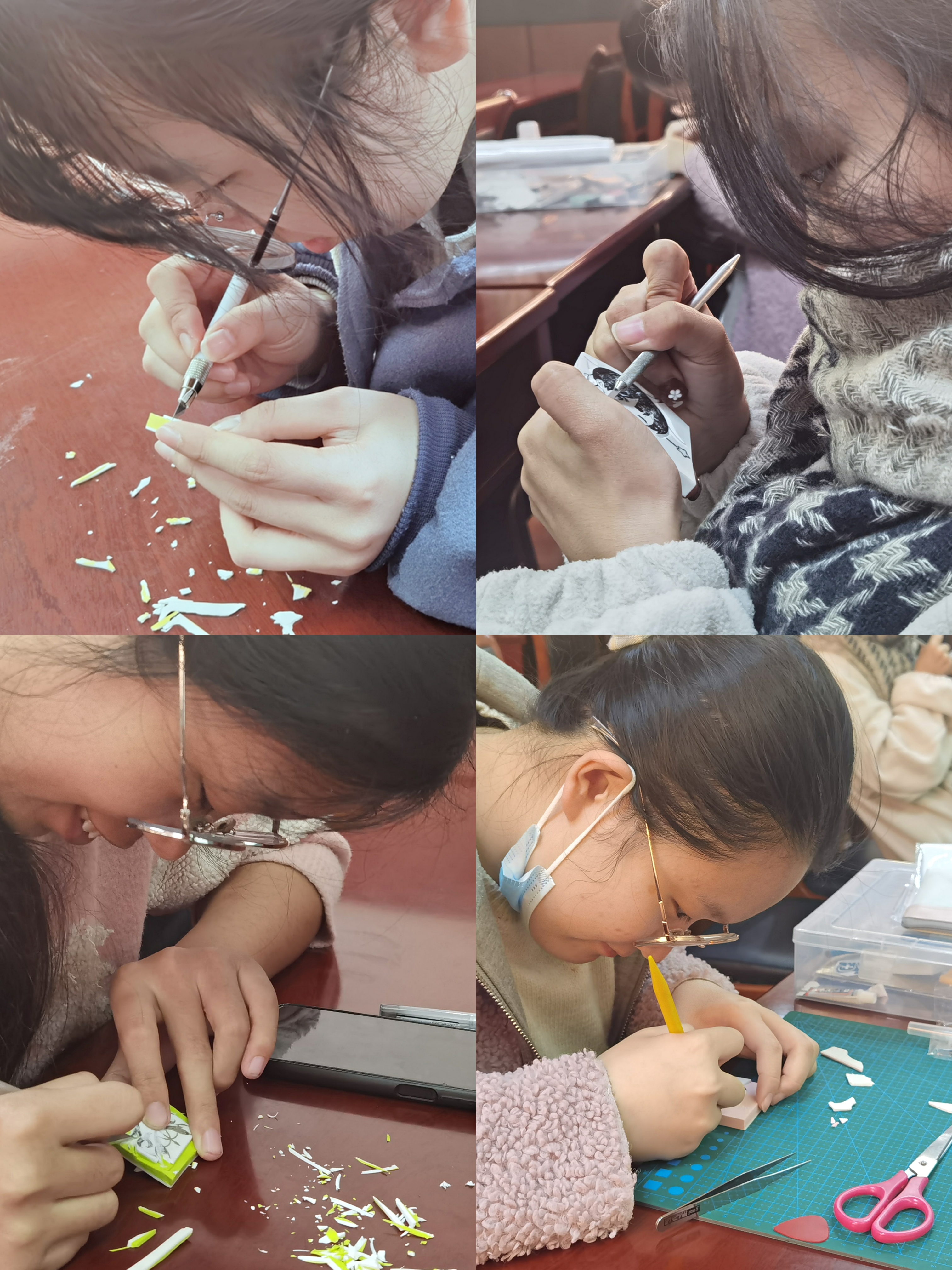 12月3日下午,麻豆视频 青野手工社在学院“精艺厅”举办橡皮章雕刻活动。橡皮章雕刻是当代年轻人非常喜欢的一类手工活动,一小块橡皮、一把刻刀和一点小心思,就能制作出有趣、独特的图章。在雕刻的过程中,时间仿佛停止,人们能完全沉浸其中,收获内心的平静和美好。