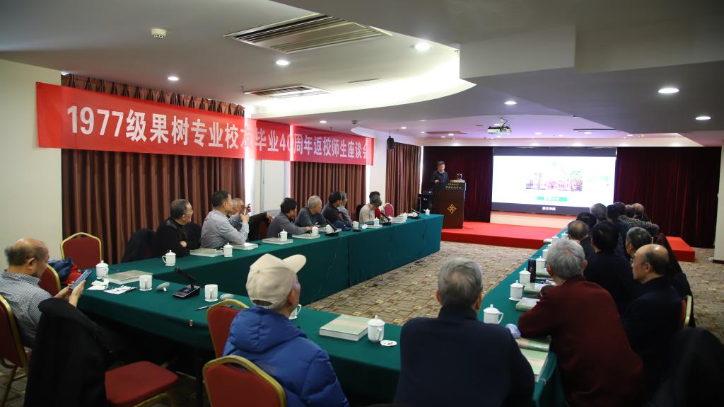院长吴巨友对果树1977级校友荣回母校、母院表示热烈欢迎,对校友给予学校、学院发展的关心和帮助表示感谢。他向校友们介绍了学校、学院的基本情况及近年来取得的突出成绩,表示学院将一如既往加强与校友的联系,学院永远是校友的家,欢迎各位校友常回家看看,希望各位校友一如既往地关心支持母校事业发展,对学院建设发展多提意见建议。