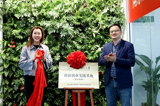 韩健与高桓为“南京农业大学创新创业实践基地(拙景园林)”揭牌。