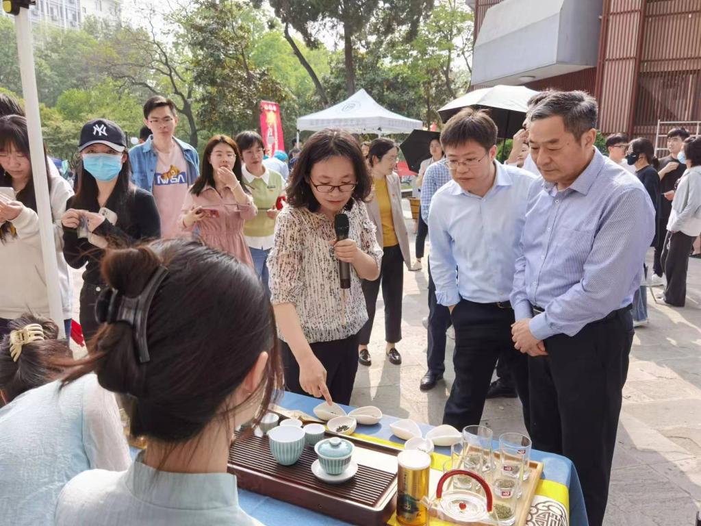 刘营军考察了活动现场,与现场师生进行交流,对本次活动给予了充分肯定。他希望茶学师生要立足人民对美好生活的向往,弘扬革命精神和传统文化,充分挖掘茶产品的价值与优势,紧扣产品亮点和特色,为茶产业高质量发展、青年师生创新创业蓄势赋能。