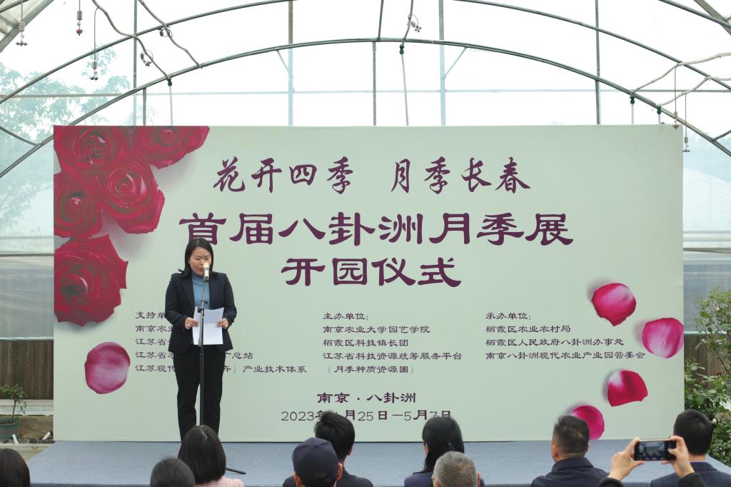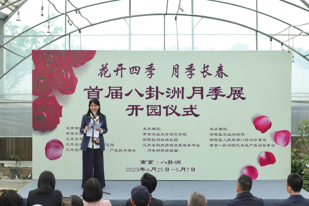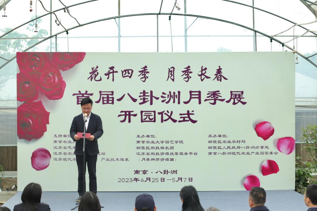 月季团队和基地的成果展,也是栖霞区科技镇长团和栖霞区八卦洲街道乡村振兴工作的阶段性呈现。并希望月季团队能以此次展览为契机,“以花为媒”,汇聚各方智力、凝聚多方力量,推动科技创新,不断产出顶天立地的成果,服务农业强国与乡村振兴;继而以此次展览为新起点,躬耕不辍,着力推进农业与旅游、教育、文化与产业的深度融合,打造宜居宜业美丽乡村,打造八卦洲乡村旅游新地标。并预祝本次展览取得圆满成功。