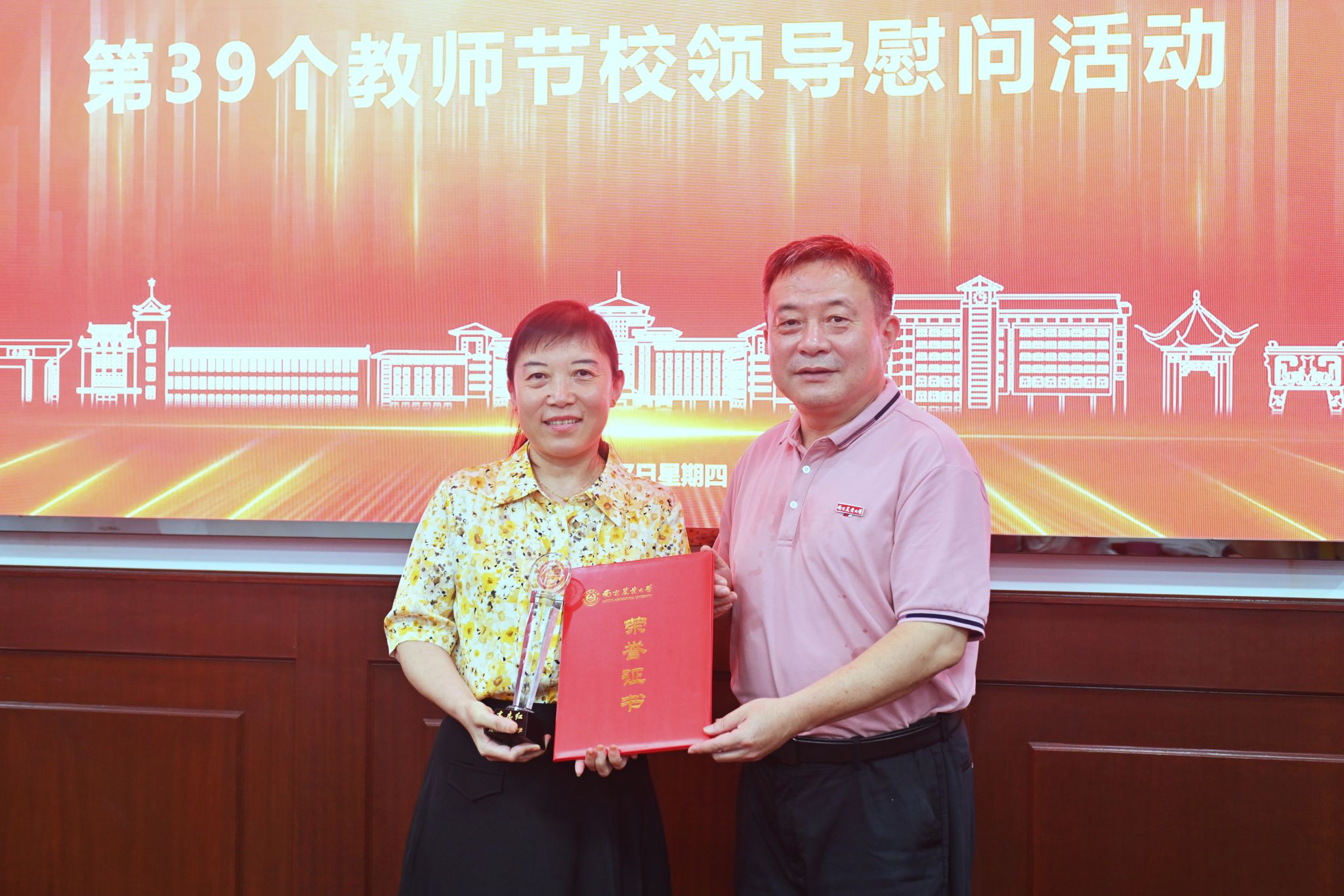 9月7日上午,在第39个教师节到来之际,学校开展教师节慰问活动,校党委副书记、纪委书记吴荣顺一行赴学院慰问教师代表,为他们送上节日的祝福和诚挚的问候。学校党委宣传部副部长屈勇、校园文化建设事务主管崔滢、学院领导班子参加慰问活动。