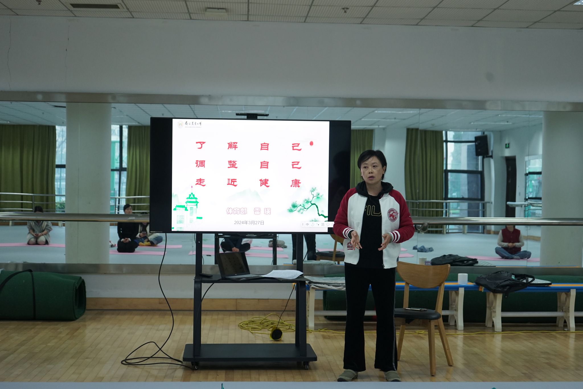 工会在校体育中心瑜伽馆成功举办运动与健康专题培训活动。本次培训邀请了学校体育部雷瑛老师担任主讲嘉宾,旨在提高教职工的健康意识,促进身心健康发展。