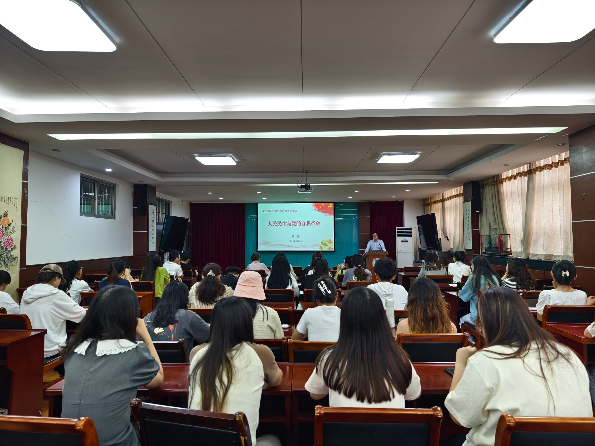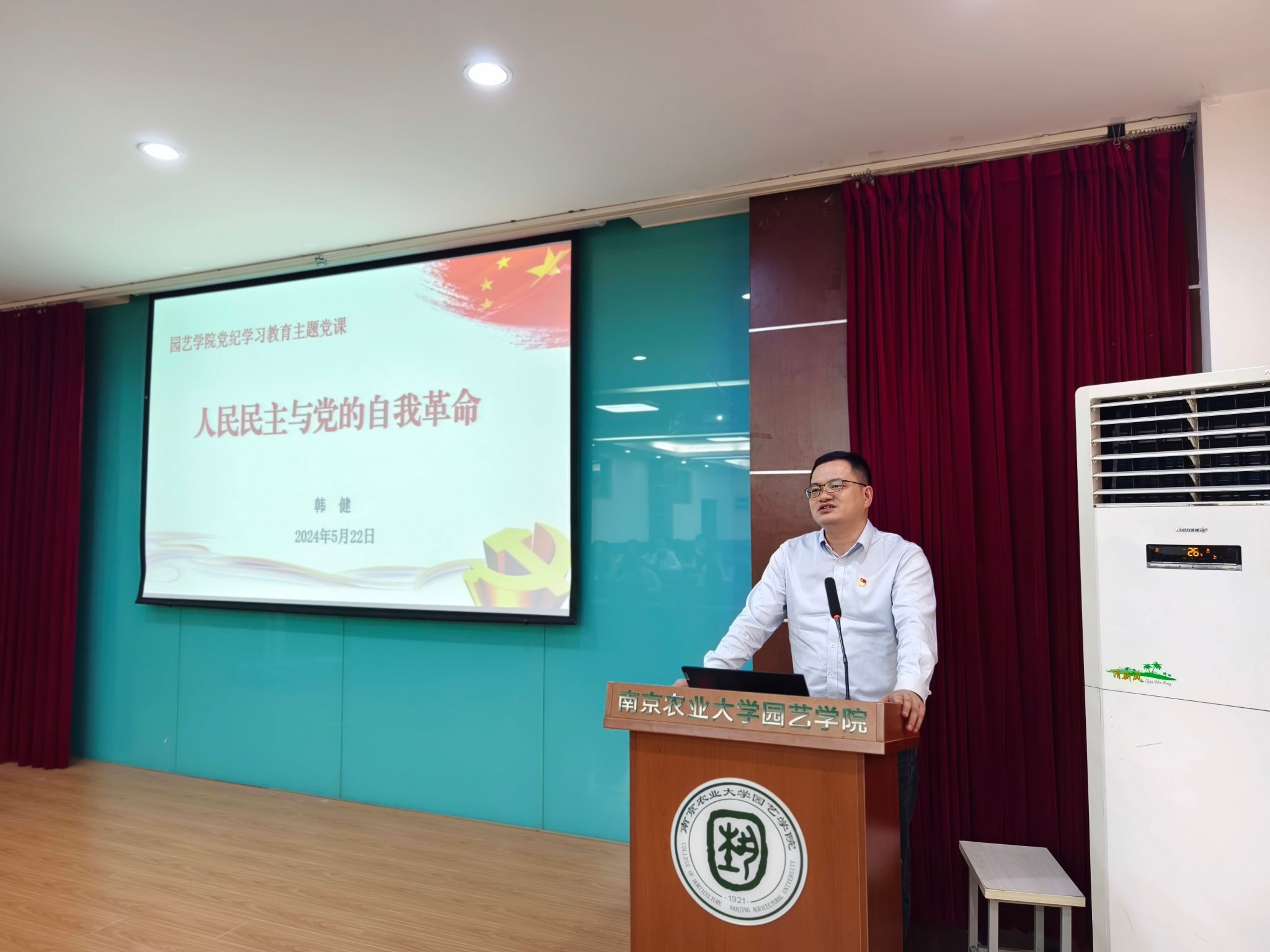 党委书记韩健作《人民民主与党的自我革命》党纪学习专题辅导报告,果树专硕研究生党支部与园艺专业本科生党支部全体成员参加学习。