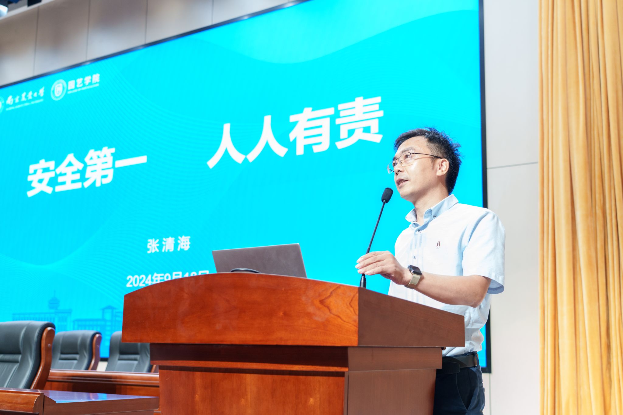 张清海从安全意识、安全教育、安全管理三方面进行实验室安全教育。他表示,实验室安全是校园安全、社会安全的重要组成部分,希望大家积极主动学习安全知识,理论与实践相结合,提高临场应变能力;做好安全管理,落细落实,全面、严格推动实验室安全检查与隐患整改,落实闭环管理。