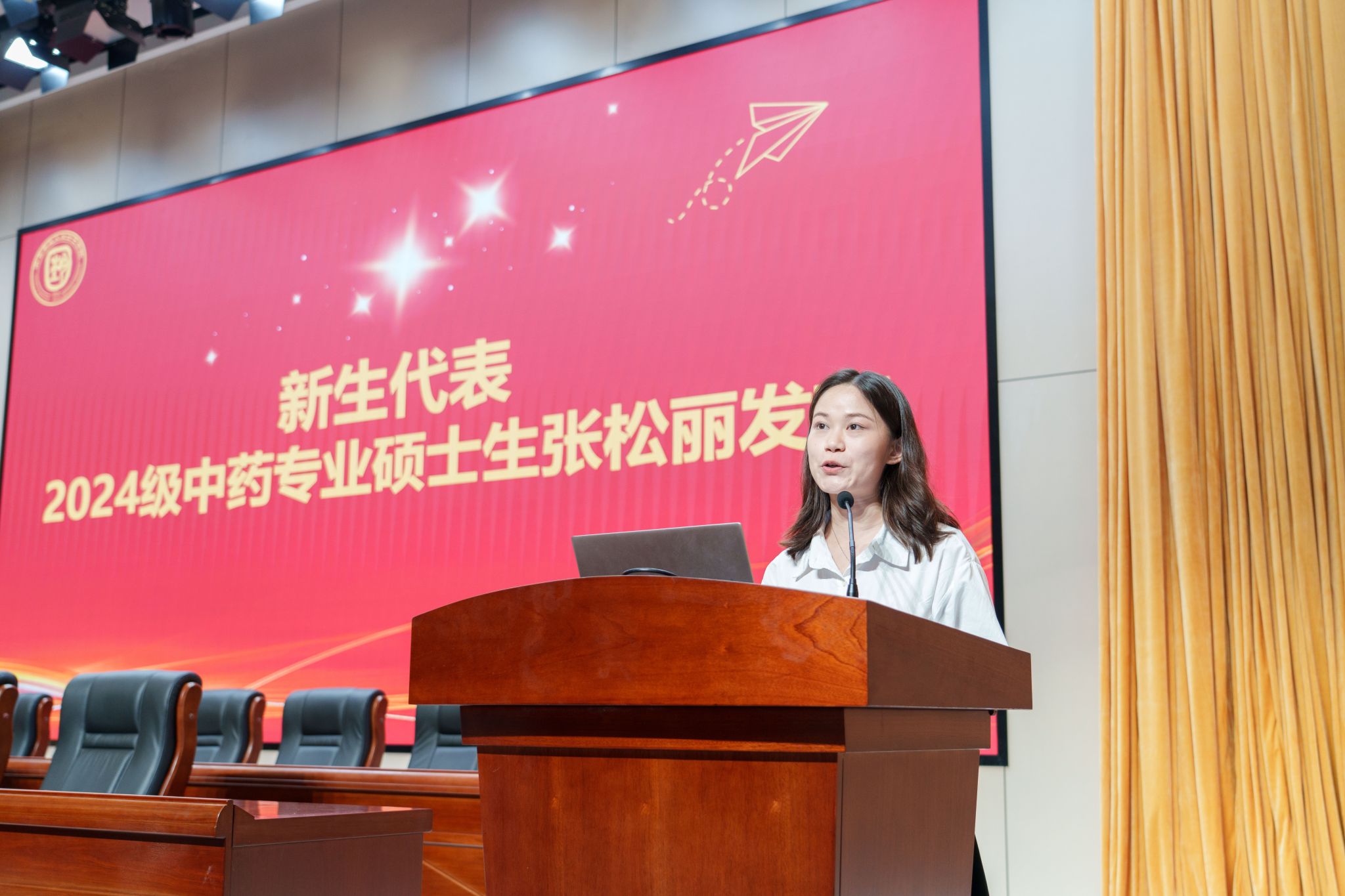 老生代表果树学博士生严鑫结合自身科技小院的科研经历,希望大家树立使命感与社会责任感,真正学以致用,把论文写在祖国的大地上。新生代表中药专业硕士张松丽谈到在本科的成长收获让她继续选择本校,希望在未来三年能坚持热爱、奔赴热爱、学之以恒、求之卓越。