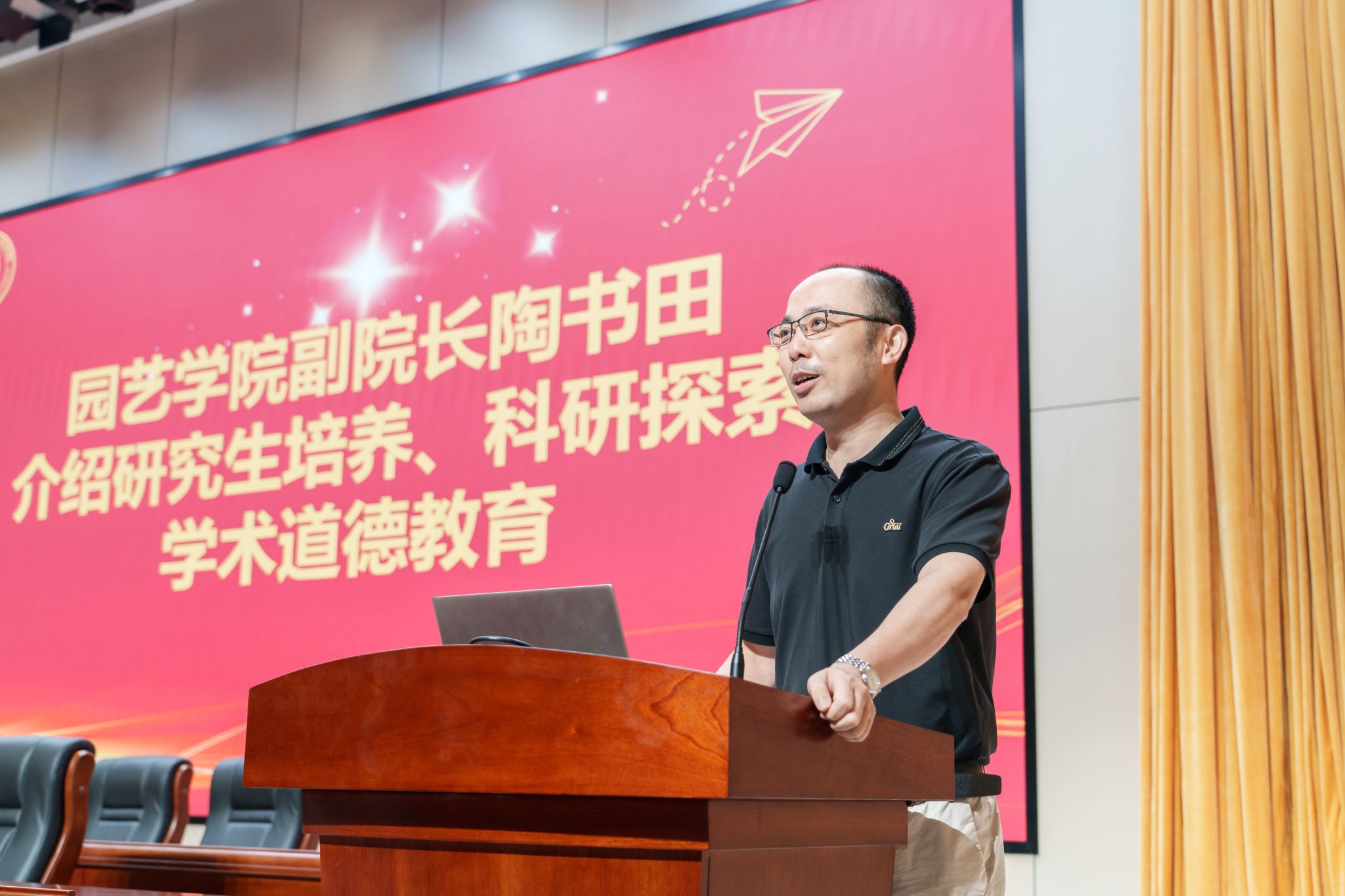 姚志友讲述了学院的办学历史和辉煌成就。他希望大家以校训、院训精神为引领,铸就诚实正直品格;保持空杯心态,主动学习,不断完善自我;培养合作精神,通过沟通交流提升理论水平;树立社会责任感,心怀天下、勇于实践,为中国式现代化提供南农园艺人的答案。