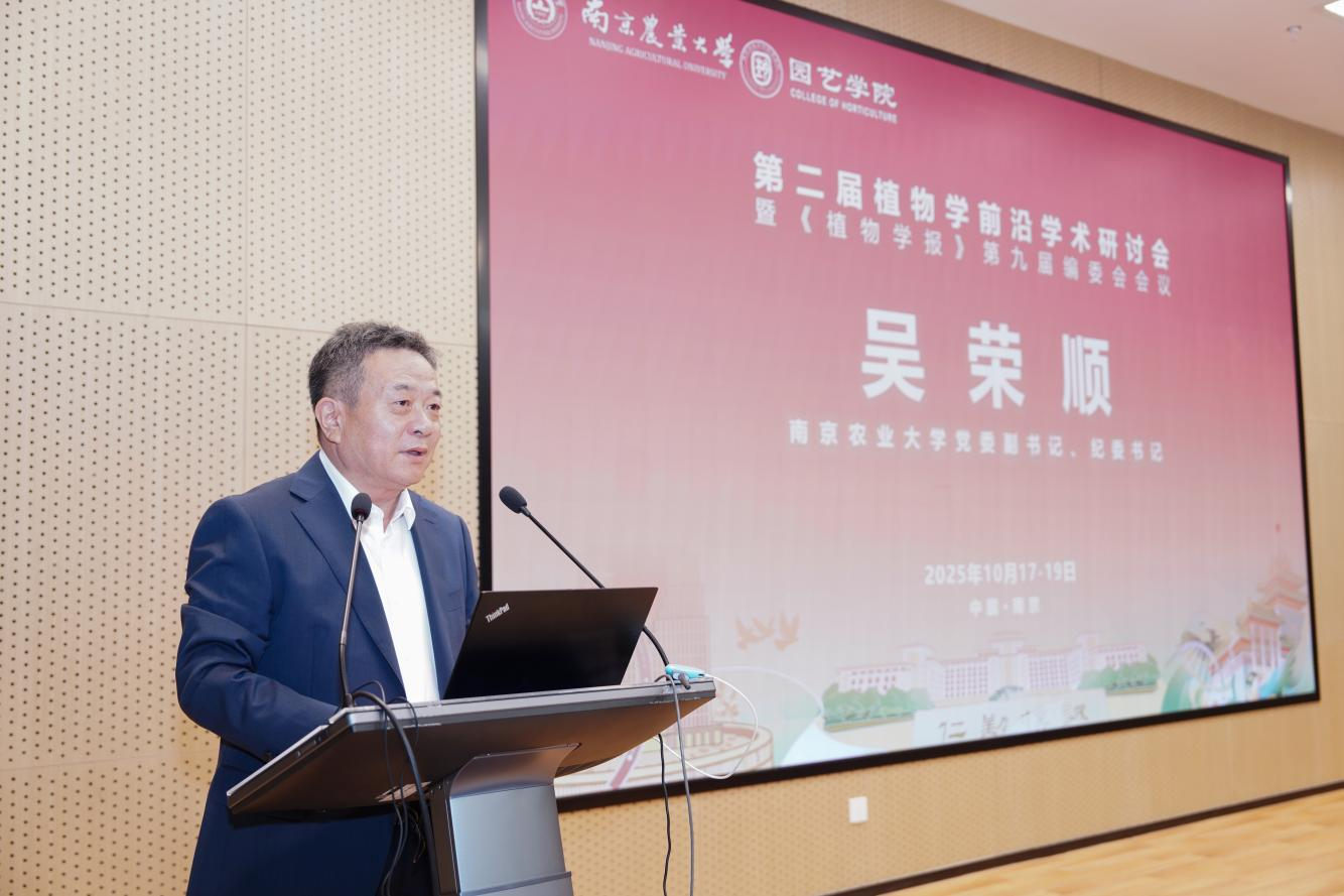 2025年10月17日至19日,第二届植物学前沿学术研讨会暨《植物学报》第九届编委会会议在南京农业大学滨江校区成功举行。校党委副书记吴荣顺出席会议并致辞。