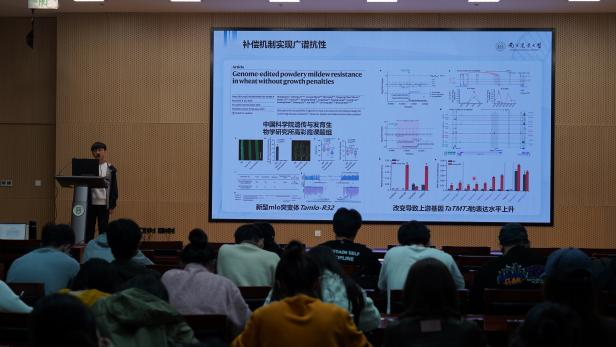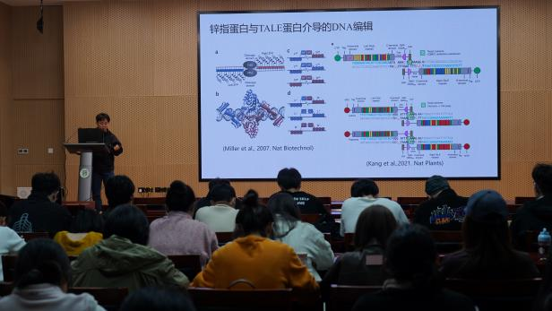 李毅系统梳理了基因编辑技术的发展脉络,从锌指蛋白、TALE蛋白到CRISPR/Cas9、Cas12a及单碱基编辑等主流工具,清晰讲解了技术迭代的逻辑与各自优势。他还结合自身研究,展示了基因编辑在作物精准性状改良中的实际应用,帮助同学们了解作物育种的新技术路径。