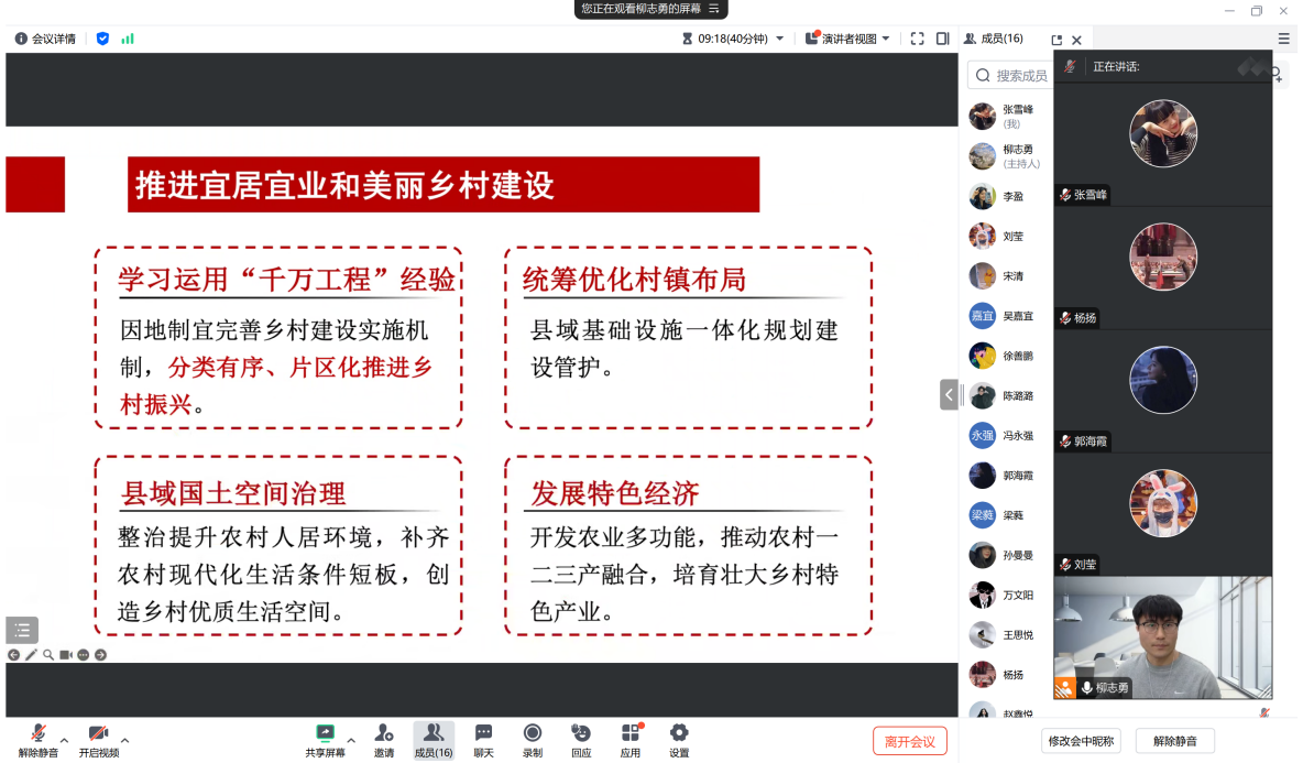 与会同志围绕“分类施策、片区推进”的要求展开交流。大家一致认为,坚持精准分类、连片打造,有利于整合资源、形成合力,促进乡村产业升级与整体发展。会议结合观赏园艺学科特点,探讨了在优化乡村生态景观、培育特色产业、助力宜居宜业和美乡村建设等方面的独特优势与实践方向。
